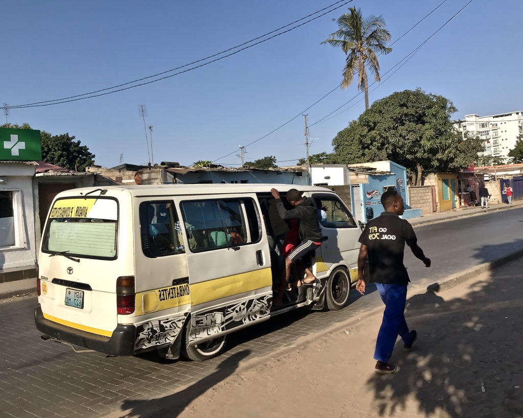 O primeiro impacto é forte. O ambiente é quente. Nas margens das ruas, casas feitas de cimento e chapa, pintadas com publicidade em cores gritantes, caracterizam grande parte da cidade. O trânsito, absolutamente caótico, não tem estrada. As pessoas não têm passeio. O trânsito dos passeios e as estradas de pessoas confundem-se em semáforos que aparentemente ninguém vê, buzinas, carrinhas à velocidade da luz onde não há limite de passageiros (Chapas e My Love*, meios de transporte locais), buracos, avenidas largas e bairros-labirinto, negócios de rua de tudo aquilo que possam imaginar (frutas, legumes, capulanas, alguidares, recargas para o telemóvel… é só escolher!), lixo e esgoto.
