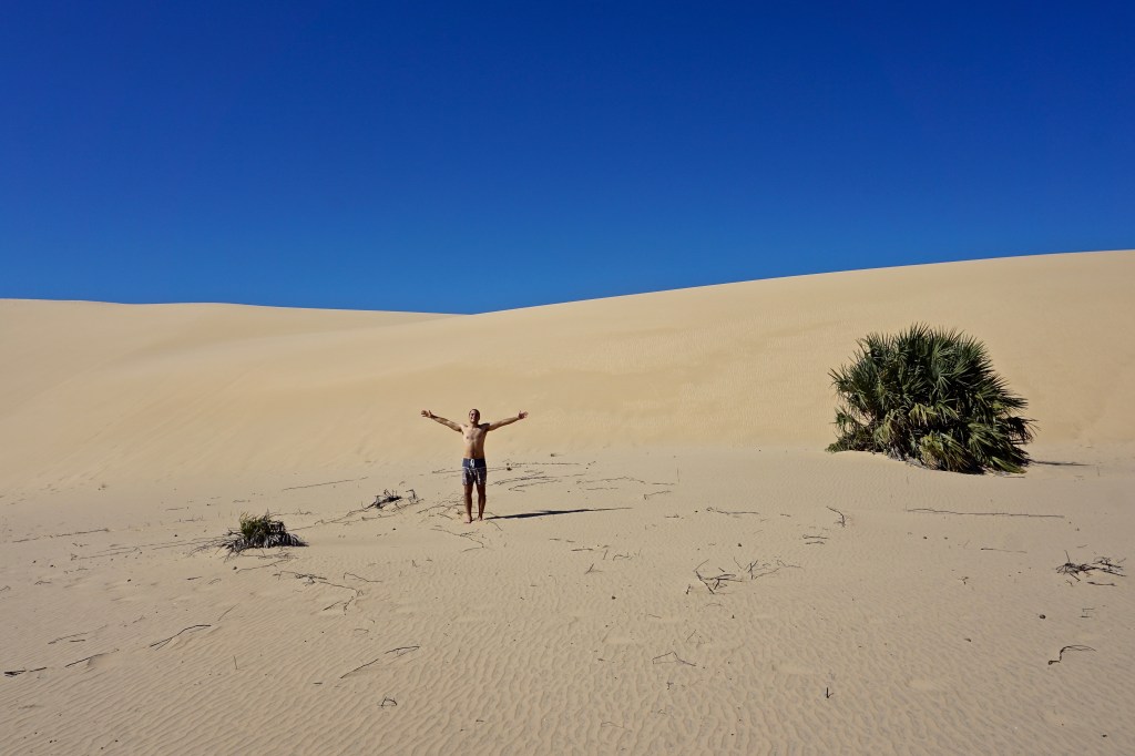Vamos colocar as coisas assim: Bazaruto é o lugar mais belo que já vimos. O turquesa absurdo da água que é um autêntico espelho. A areia fina e branca que parece farinha. Os bancos de areia na maré vazia a formar pequenas lagoas em meia-lua. As altas dunas de onde se capta a ilha em toda a volta. A vegetação tropical verde que se intromete entre oceano e ilha. Tudo isto é Bazaruto, e as palavras serão sempre pobres para descrever este lugar imaculado.