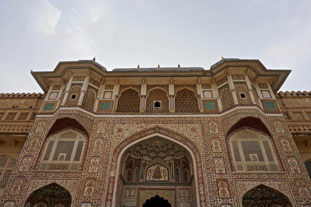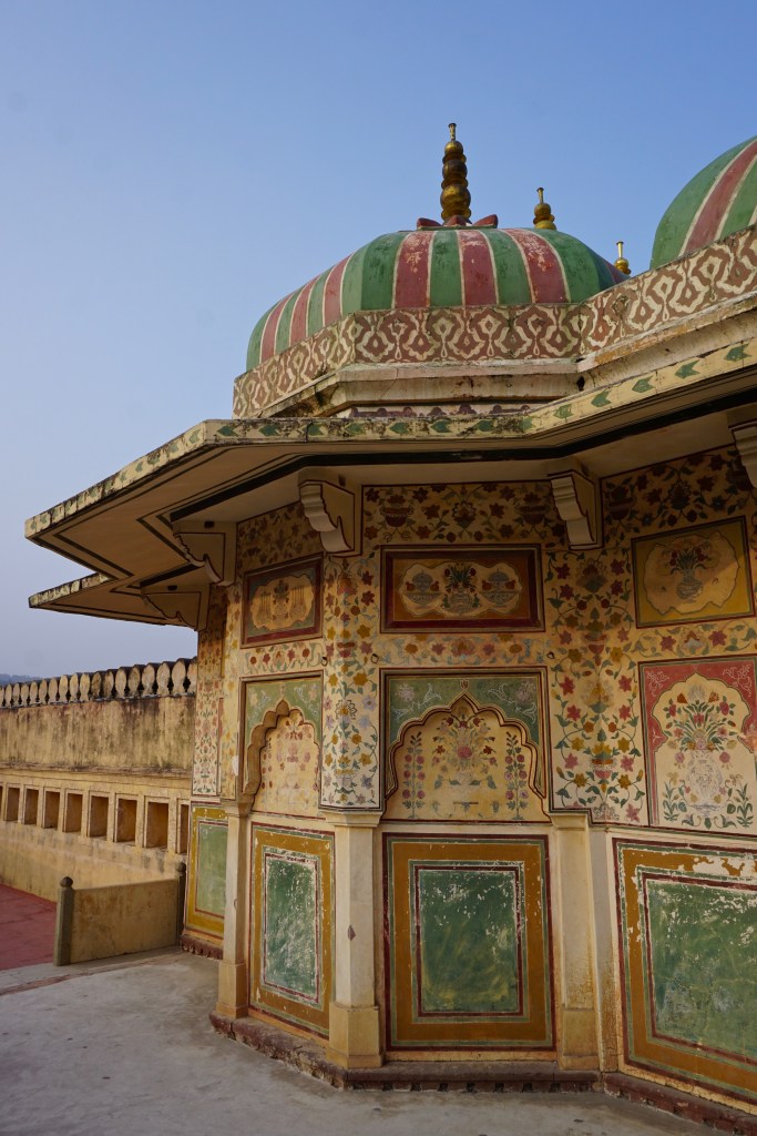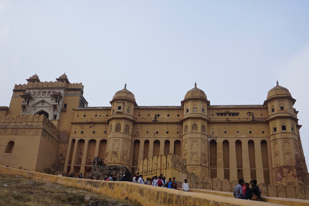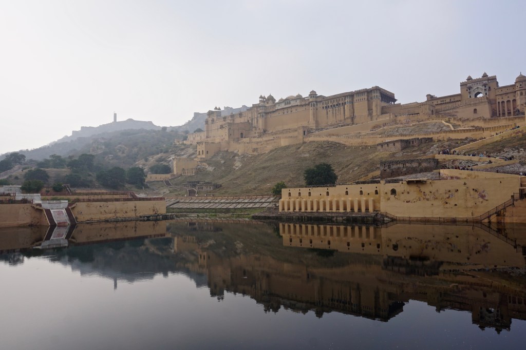 - Amber Fort: Um dos highlights da visita a Jaipur é visitar o forte da cidade que lhe antecedeu. Amer, ou Amber, fica a apenas 11 km de Jaipur. Imponente e amarelo, no topo de um monte, o forte é uma bomba artística que mistura arquitetura Mughal e a decoração irresistível dos Marajás. O complexo divide-se em secções que serviam funções diferentes no quotidiano da governação do reino, residência da realeza ou devoção religiosa. Enormes portões supersticiosos ligam diferentes pátios, sistemas artificiais de cascatas internas arrefecem o interior de alguns edifícios e passagens subterrâneas para um outro forte mais alto asseguravam a fuga da família real em tempos de guerra. Vale bem meio dia de visita;
